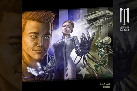 Midnight Rises is the interactive graphic novel experience written by John Scalzi and illustrated by Marvel/DC superstar Mike Choi. Experience the alien signal that kicks off the mysterious Morning Star Protocol, discover the conspiracy against the GMSC and make choices that directly impact Midnight Star, the sci-fi action game (separate app).