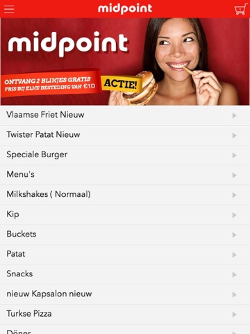 De MidPoint app is gemaakt om gemakkelijker en sneller een bestelling te kunnen plaatsen door middel van een simpele menukaart. In de menukaart kunt u onder andere kiezen voor populaire gerechten, maar u kunt zelf ook een menu opstellen.