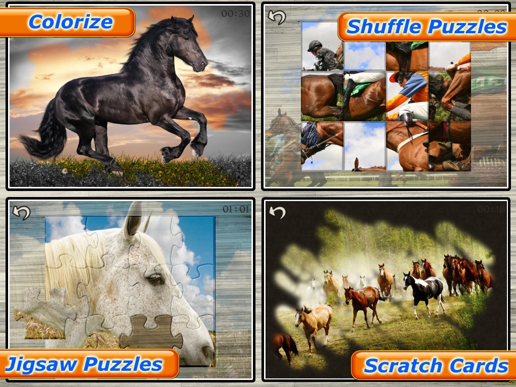 Play 45 amazing picture puzzles with various horses!
