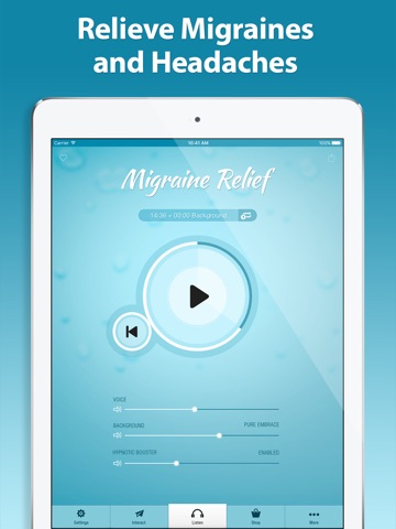 Migraine Relief Hypnosis is free to try and effective with the default settings. A one-time in-app purchase is required only if you wish to change the default settings. (Each of our free hypnosis apps includes its own in-app purchase; in-app purchases cannot be shared among separate apps.)