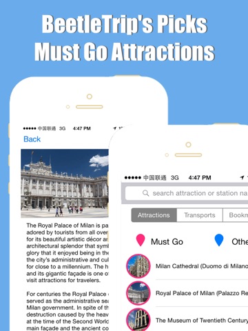 Milan Offline Map by Beetletrip is your ultimate oversea travel buddy. Offline GPS locates and tracks your position in Milan at real time. The most important feature is: NO 3G/4G, NO Wifi and absolutely NO Network Data needed. 100% offline. This app provides you offline city map with all the metro/train stations, metro route search, must-go tourist attractions (red pin) plus other hundreds of POI -Point of Interests (blue pins). Save you expensive roaming charges while you are traveling abroad.
