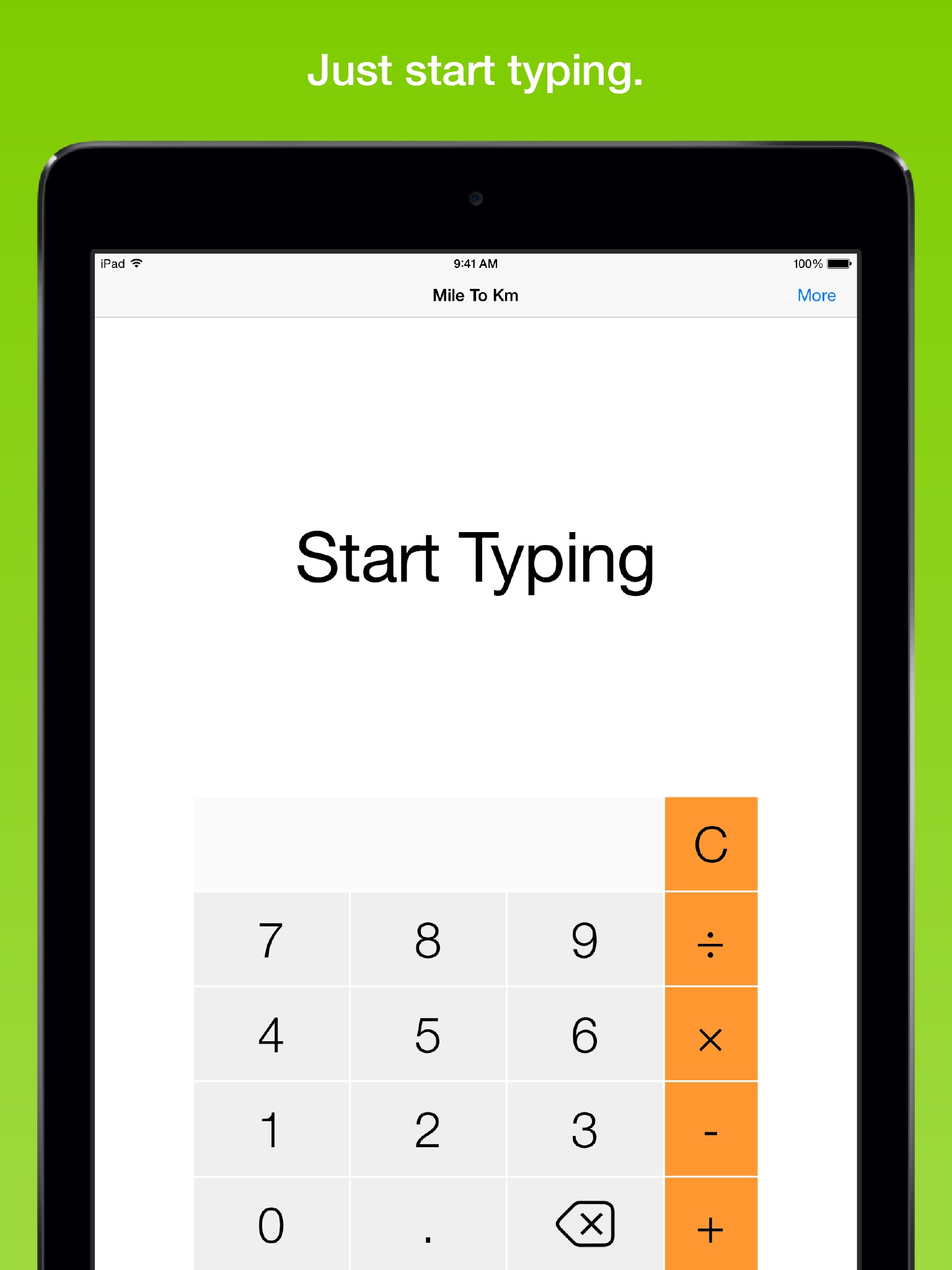 I love this converter app! It is fast, simple, and easy to use! It provides decimal inputs, and you just start typing on launch into a huge number keypad.