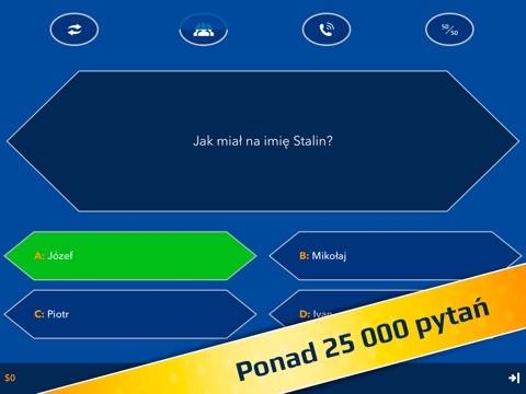 Ogólnie bardzo nie polecam pytania na takim samym poziomie za 300 zł czy tez za milion. Szkoda nabijać im pobrań :) Oczywiście możliwość wykupienia koła ratunkowego za prawdziwe pieniądze. Nie polecam !!