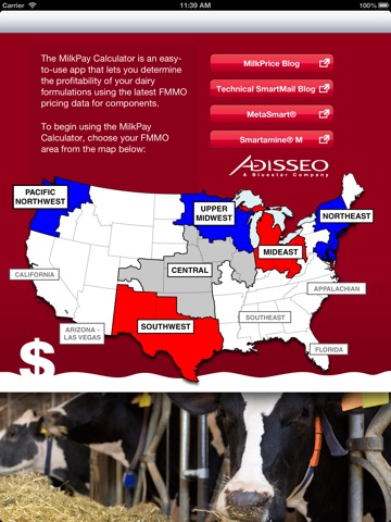 Milkpay is a calculator for use with the seven United States Federal Milk Marketing Orders (FMMOs) that pay for milk produced, based on the weight of components in the milk. Milk from these Federal Milk Marketing Orders represents 54% of the milk produced in the U.S. The payment is based on the quantity of Milk Protein, Butterfat, and Other Solids multiplied by the values set by the Federal Milk Marketing Orders Board for each component. These prices are updated every month, at the end of the month, and are the same for all six of the FMMOs that pay on components. In four of the FMMOs, there is also a premium for having a somatic cell count that is below 350,000 cells per milliliter.