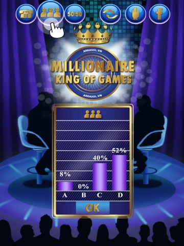 -Especially: “Millionaire-King of Games” support newest feature: “Ask friend to help to answer the difficult question via Facebook.”