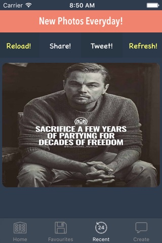 - Make YOUR own motivational photo using the Create option and share it via Facebook/Twitter.