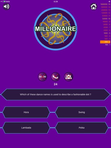 Feel the suspense of being in the hot seat of a famous TV show and race to the top through increasingly difficult questions to become a virtual millionaire.