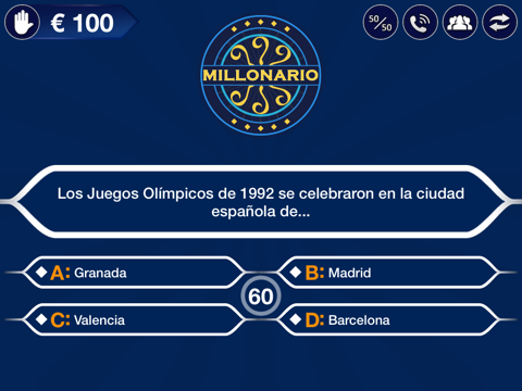 ◉ Esta app es un juego de preguntas y respuestas en español inspirado en el popular programa de la tele quien quiere ser millonario.