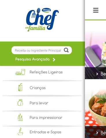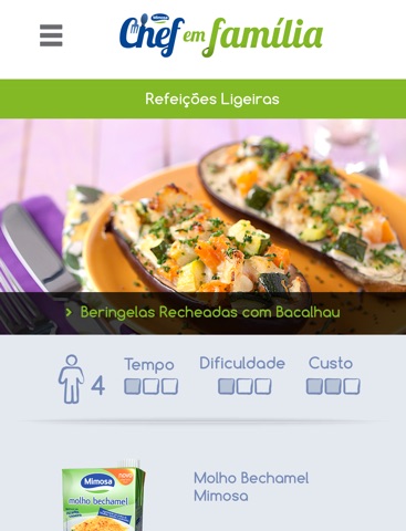 O Chef em Família é a app da Mimosa que ajuda na preparação de receitas fáceis práticas e deliciosas preparadas em 3 tempos.