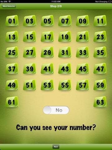 Mind Detector LE is especially designed for iPhone, iPad & iPod. It provides a great user experience by detecting which number you choose. Tap on the start button to start mind detection process. In the process of detection , you need to answer YES/NO by changing the switch. After several steps, Mind Detector LE apps detect your number.
