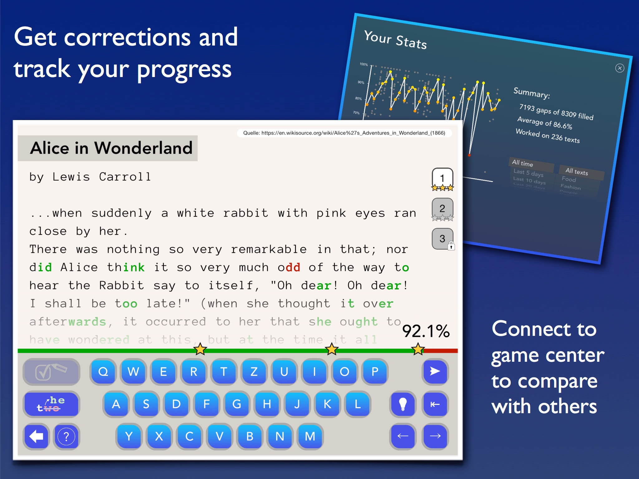 Take an interesting and authentic English text and erase parts of words. In Mind the Gap you have to reconstruct the missing fragments.