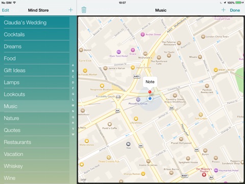 Furthermore Mind Store can show you locations nearby that you have tagged in a note before (if you so wish).