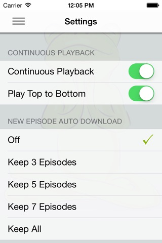 * Streaming access to play episodes from anywhere