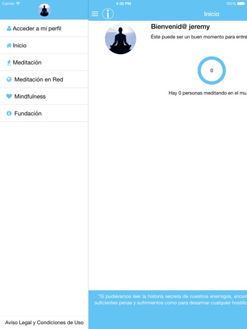 - Estadísticas personales, meditaciones en la última semana, incremento, minutos meditados...