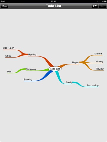 You can make your MindMap easily; Tap a node and push and drug the button, you can create new node; Double Tap the node, you can edit the word of the node.