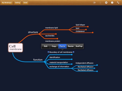 • Cut/Copy/Paste within and between maps and other apps (e.g. Mail, Safari and Notes etc.)