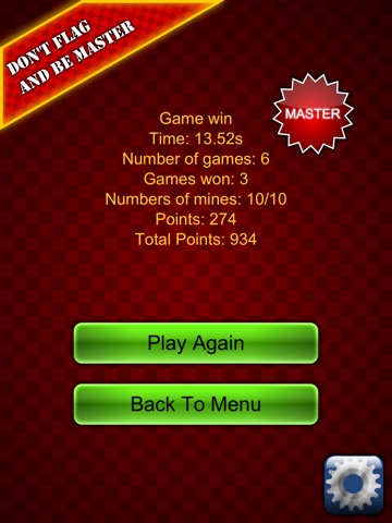 * If you are the master and not using flags to mark the mines for a win you get double points