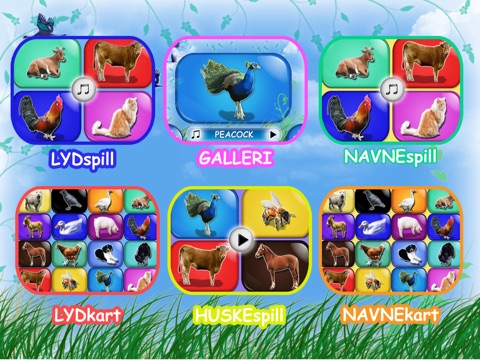 Enkel tilgang til alle gårdsdyrene og deres lyder/navn i et stort bilde