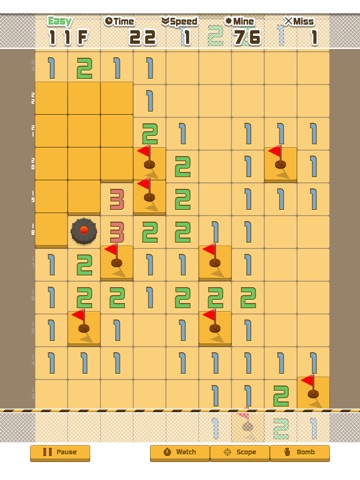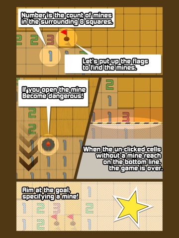 The numbers indicate how many mines are contained in the 8 neighboring cells. On/Off of a flag is made by carrying out the tap of the closed panel. A panel closed by the double-tap can be opened. When the tap of the number is carried out, and the surrounding number and number of a flag (mine) are the same, the panel except having stood the flag opens.