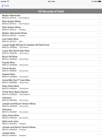 By using the optional GPS location ability in this application, you can locate yourself amongst mineral records. Over 180,000+ records covering: gold, silver, platinum, emerald, diamond and more.