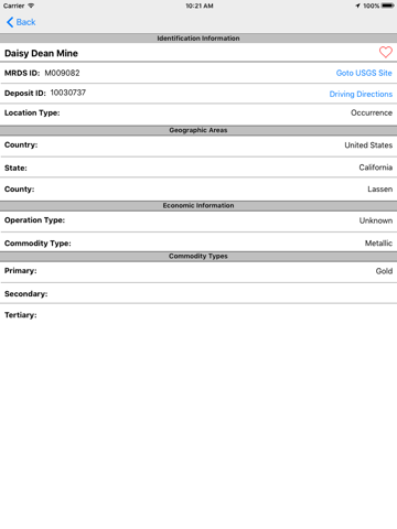 - Quickly find mineral locations, and add them to your favorites for later viewing.