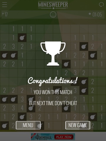 The purpose of the game is to open all the cells of the board which do not contain a bomb.