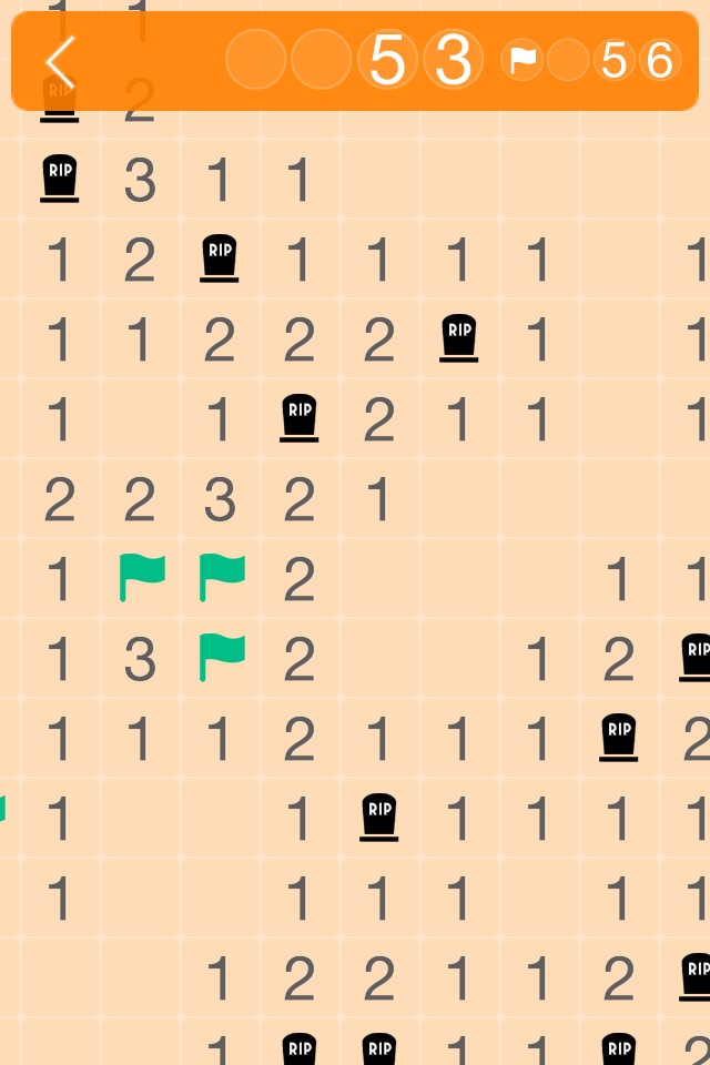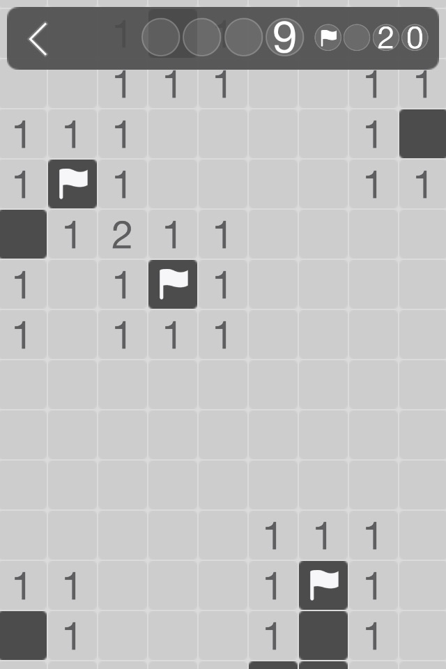 Every non-bomb cell you open will tell you the total number of bombs in the eight neighboring cells. Once you are sure that a cell contains a bomb, you can long tap to put a flag it on it as a reminder.