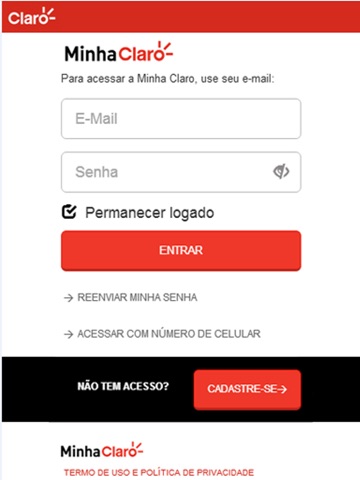 Tenho cadastro ativo no Meu Claro pelo site. Fui acessar o login pelo app usando meus dados, já cadastrados, disse que só pode senha numérica.