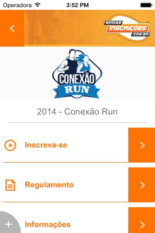 Ao escolher uma corrida com o app Minhas Inscrições você tem acesso as informações principais e regulamento dos eventos.
