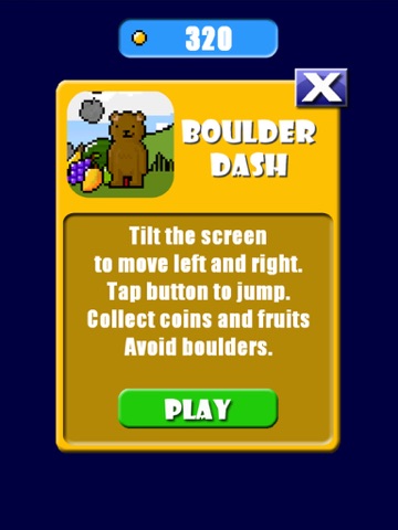 Boulder Dodge: Tilt the screen left and right to move the bear and catch falling coins and fruit while dodging all sizes of incoming boulders and rocks.