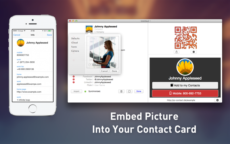 • Include profile picture & social network nicknames & multiple addresses & multiple phones in the QR Code