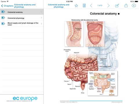 We would like to present you with a tool which provides you a new and complete way to develop a good communication workflow with your patient. It will be always at hand in your iPhone or iPad for those moments when you need to talk about and discuss colon cancer with your patient. With the help of this application you can explore a large collection of high quality, simple yet rigorous medical illustrations about all the relevant aspects of the disease (from its anatomical basis to its manifestations, staging, management and treatment options). Using these images to explain to your patient everything he needs and wants to know, you will get him more involved to take an active role in his own care. The Miniatlas Colon Cancer is the perfect tool to encourage him to talk about any concerns or doubts he might have. This is the best way to give him the best personal care possible and will also help you manage his case more efficiently.