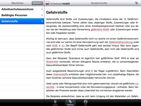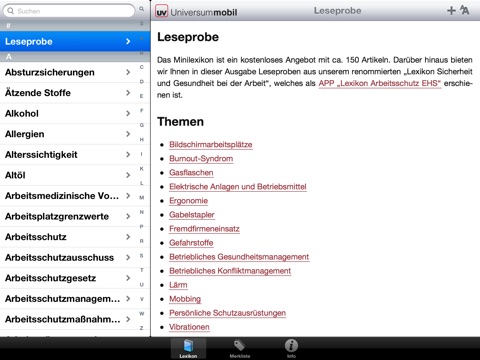 Arbeitsschutz-Knowhow für unterwegs: das Minilexikon von Universum sollte auf keinem iPhone fehlen. Es vermittelt einen ersten Einblick in das Thema Arbeitsschutz und eignet sich für Einsteiger, Management und Sicherheitsbeauftragte gleichermaßen.