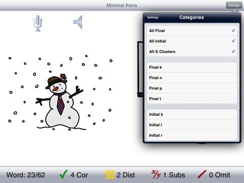 This app focuses on Final Consonants, Initial Consonants, and Initial /S/ Clusters. Appropriate for children ages 3-5 with impaired speech intelligibility.