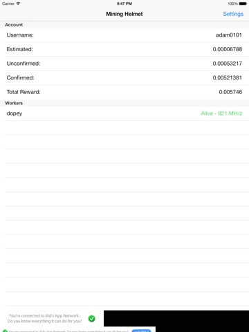 MiningHelmet is an iOS app for the Bitcoin mining pool Bitcoin.cz aka Slushs Pool. It provides a simple user interface to monitor the status and rate of your workers as well as your overall mining stats.