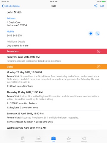 Ministry Diary is an application designed for Jehovah’s Witnesses to organise their ministry. It allows users to set reminders, note call details and maintain accurate records of activity for their field service reports.