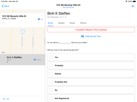 Streamlines data collection and entry. Only issue is that trying to leave a note for a voter who was not contacted irreversibly sets the status of that voter to contacted