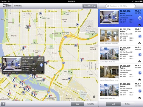 The easiest way to discover condo living in the twin cities is here! Better Homes and Gardens Area Leaders is proud to release the only Loft, Condo and Townhome specific mobile app in Minnesota. Here you can browse through various buildings and developments and locate your next home to buy or rent. This app compliments their web site www.MinnesotaLoftsandCondos.com and is backed by Lofts and Condos Specialists ready to answer your questions and help you discover urban living. The app has a clean design and makes searching for properties in dense areas organized and easy. The comprehensive building directory has over 2,500 profiles of twin cities condos, lofts and townhome projects so you can get to know Downtown Minneapolis or Summit Avenue in St. Paul like never before. The app is fully GPS enabled and can tell you what buildings are nearby how many units are for sale or rent in them and so much more! Download today and take your condo search with you!