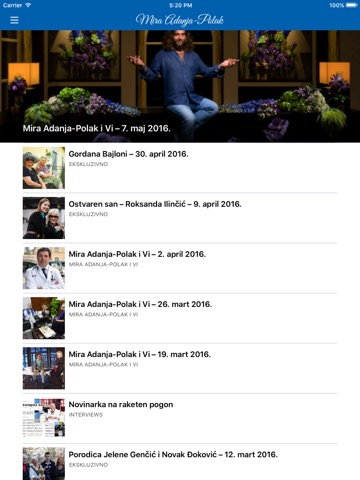 Mira Adanja-Polak je novinar koji ima veliki broj ekskluzivnih intervjua sa poznatim ličnostima iz sveta umetnosti, politike, biznisa i šou-biznisa, kao i s pripadnicima kraljevskih porodica. Intervju je njena specijalnost, jer njoj govore i one stvari koje su drugima prećutali.