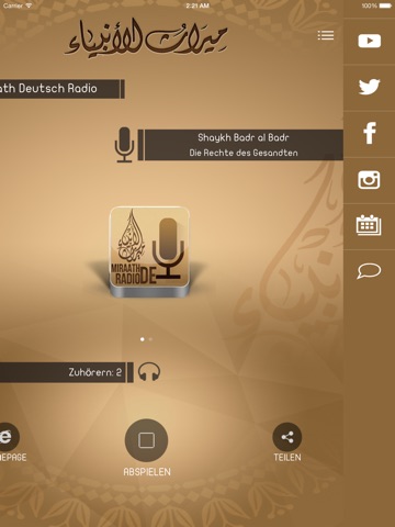 Der Radiosender «Miraath al-Anbiyaa» freut es, den Beginn der Übertragung von Unterrichten, in der deutschen Sprache bekannt zu geben. Es werden islamische Unterrichte und Vorträge von großen Gelehrten und Studenten des Wissens in deutscher Sprache übertragen, sowie Quranrezitation rund um die Uhr.
