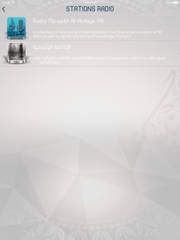 - la possibilité découter la radio Miraath Al-Anbiya en langue française, ainsi que la radio principale en arabe et la radio du Noble Coran.