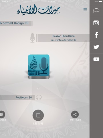 - la possibilité de suivre les nouveautés du site via les pages Miraath Al-Anbiya sur les réseaux sociaux sans avoir besoin de sortir de l’application.