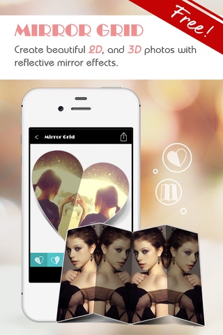 * Select photos from your albums or take a photo, and automatically turn it into a photo with mirror effects.