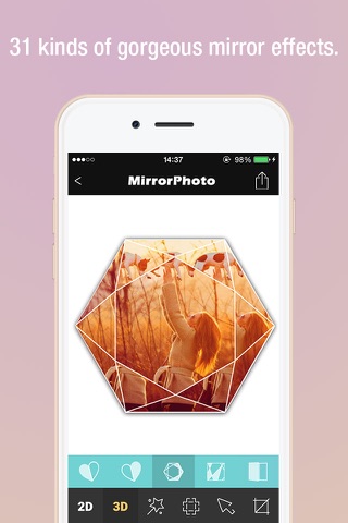 * Select photos from your albums or take a photo, and automatically turn it into a photo with mirror effects.