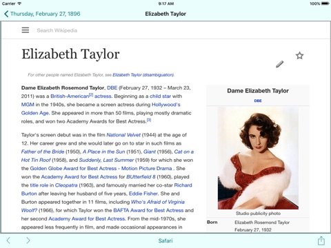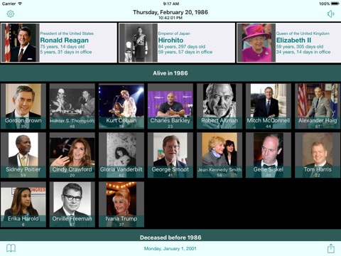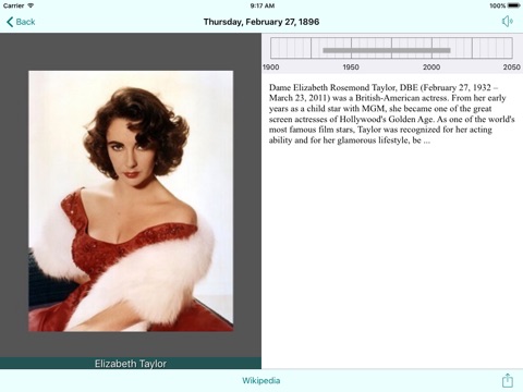 Tap a picture tile and get a short biography, a big picture, timelines, and a link to the corresponding Wikipedia page.