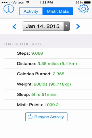 - Use MisfitWatchr to review each days exercise: