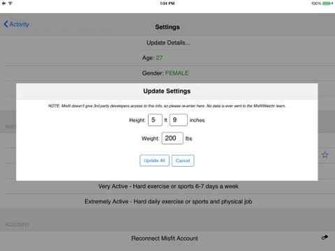 MisfitWatchr is not affiliated with weight loss programs or Misfit. Activity Point calculations are approximate and based on data taken from your Misfit tracker device.