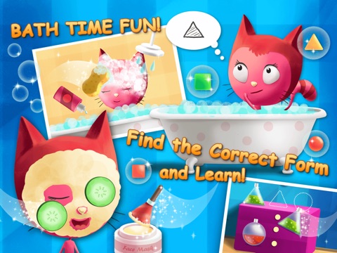 - Shower Miss Preschool Kitty, give her a bubbly bath and spa, and learn about personal care, shapes and colors.