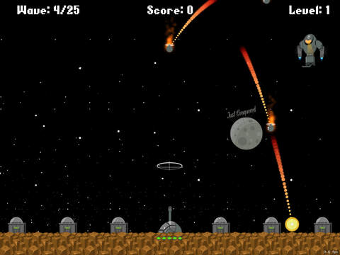 Best Word Territory Invaders the best of Missile Commando and Space Invaders by defending the enemy against an ever increasing great explosion of falling bombs. Tips to play: The player must tap to shot and rotate the screen with two hands for directions and prevent the bomb from destroying your territory. As the levels continue, you gain new experience and power ups appear, forcing the player to think both tactically and strategically to last as long as possible against unending invasion. You have to defend your territory by shooting against the bomb dropping from the sky, do not allow the bomb to drop on your territory, and prevent the blue bomb from dropping on your territory, the blue bomb has high destructive effect and nice target, Firs level destroy 25 bomb, Second level destroy 50 bombs, third level destroy 75 bombs, and continuous level, the more you passing the level, the more it becomes more interesting. Good Luck.