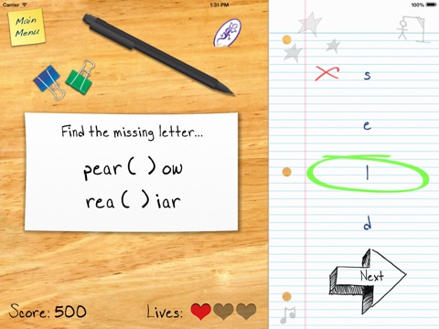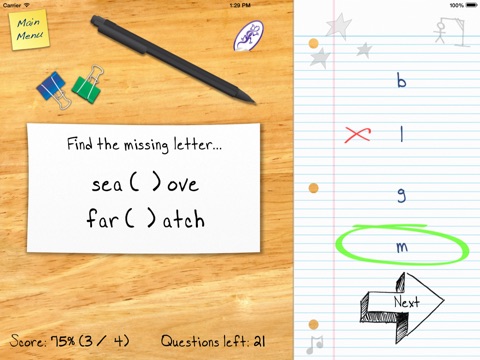 This App is perfect for expanding your childs vocabulary and ability to spell. The object of this multiple choice game is to find the letter that is missing from the four words in the question.